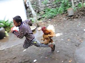 海口市龙桥镇一只被主人喂养近一年的啄人“公鸡王”(如图)重6斤6两,体型健壮、生性好斗,不仅不让人靠近,而且连凶猛看家犬也不放眼里,在主人家房前屋后“占地为王”,接连啄伤20余人,在当地搞得名声很“坏”。有人愿出800元买鸡,主人称首先要保证不虐待公鸡,否则免谈。
