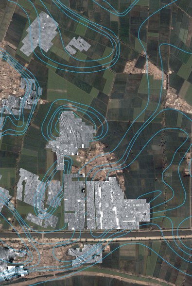 利用雷达扫描得到的彩色卫星图,显示了被埋在大巴堆下的街道、住宅和神殿的清晰轮廓。