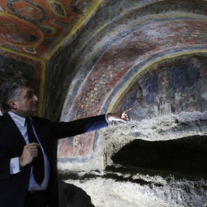 去年6月,在圣保罗诞辰纪念活动结束时,梵蒂冈宣布发现圣·保罗的肖像。但是,这一画像是一幅大型壁画的一部分,它还包括耶稣其他3位门徒的正面画像。4幅圆形画像画在一位贵妇在圣·特克莱陵寝的埋葬地的天花板上,画像直径50厘米,隐藏在极度潮湿和缺乏空气流通导致的白色碳酸钙涂层中。为期2年的复原工程的负责人巴巴拉·玛泽伊说:“使用新的激光技术,我们可以燃烧掉相对较厚的碳酸钙沉积物而又不损坏壁画的缤纷色彩。”使用“光学解剖刀”激光,他们让这几位门徒的画像完整呈现在人们面前,画像显示,人们对耶稣门徒的虔诚敬意开始于基督教早期。