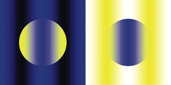 乍一看上去,这是两个颜色不同的月亮,一个呈黄色,一个呈蓝色,但真的是这样吗?实际上,在这幅由日本立命馆大学心理学家北冈秋吉设计的视觉错觉图中,两个月亮的颜色完全相同,唯一不同的便是周围的颜色。我们之所以产生月亮颜色不同的错觉皆因背景所致。