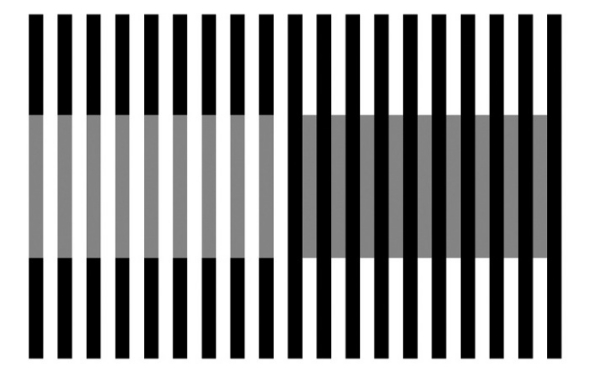 1979年,塔斯马尼亚高级教育学院的迈克尔·怀特发现了一种错觉现象,彻底改变了视觉学的面貌。如图所示,左侧的灰条亮度超过右侧灰条。而实际上,所有灰条都是一样的。在怀特发现这种现象前,所有亮度错觉均被认为由拮抗过程所致,也就是说,灰色物体在被白色物体包围时看上去更为暗淡,被黑色物体包围时则显得更为明亮。但在这幅错觉图中,被白色包围的灰条亮度更高,被黑色包围时则更为暗淡。迄今为止,怀特效应背后的大脑机制仍旧是一个未知数。