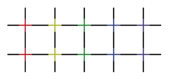霓虹色扩散形成一种错觉,图片中好似出现一个由东西走向和南北走向的直线交叉构成的网格。但如果聚精会神地凝视,这个网格便会消失。
