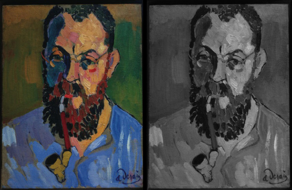 20世纪,以亨利·马蒂斯和安德烈·德莱恩为首的一群欧洲画家使用生动而不同寻常的色彩创作他们的绘画作品。当时的一名评论家将这些作品戏称为“les Fauves”(意为野兽)。这种绘画风格也就是所谓的“野兽派”。德莱恩1905年创作的马蒂斯肖像就是属于这种风格。通过这幅作品的灰度版,利文斯通展示了怪异的色彩如何借助合理的亮度表现画中内容。