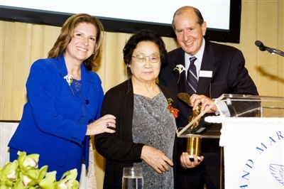 图为屠呦呦教授(中)今晨在纽约领取拉斯克奖。供图/拉斯克基金会媒体部