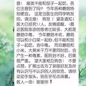 当然,除了食品安全外,不得不提的是,菌类上市时,也是食用菌类中毒事件的高发期,我们如何避免出现中毒甚至死亡的情况发生呢?为大家提几点建议: