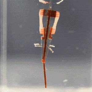 由Yuya Morimoto和Shoji Takeuchi领衔的研究团队采用一小块实验室生长的未成熟动物肌肉细胞,将其放在几张水凝胶薄片上,通过液体浴(这些肌肉细胞无法在液体生长介质以外存活)使它们继续生长直至成熟。水凝胶薄片锚定在机械骨架上,而更关键的是将肌肉以“对抗”形式成对排列,使它们以相反的方式工作。