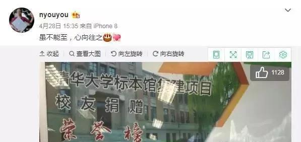 当然她也没忘记自己是清华的校友。以个人名义参与了清华大学标本馆复建项目的捐赠。