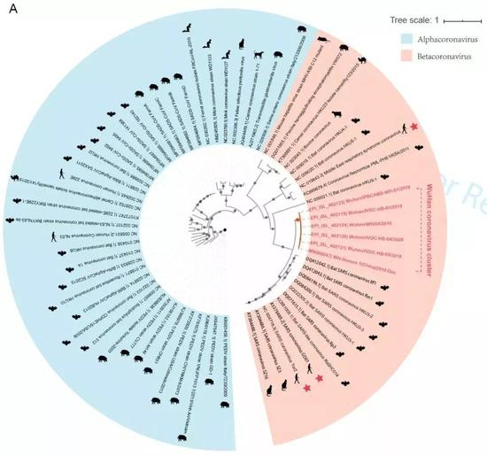 冠状病毒可分为四个属:α、β、γ、δ,SARS和MERS冠状病毒均是β属冠状病毒。进一步遗传进化分析后,研究者发现新型冠状病毒也是β属冠状病毒(Betacoronavirus)。它在进化树的位置上与SARS病毒和类SARS(SARS-like)病毒的类群很接近,但是并不属于SARS和类SARS病毒类群。