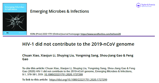 2020年1月31日,印度理工学院德里分校的研究人员在bioRxiv上发表了一篇论文,称新型冠状病毒是人为改造的病毒,因其刺突蛋白S蛋白上含有四个插入片段,这些片段与HIV-1的某些片段完全同源或具有相似性。这篇未经审稿的论文掀起了诸多讨论,虽然已被撤稿,但依旧给人们留下了疑问。2月14日,杜克大学医学中心的Chuan Xiao等人在Emerging Microbes & Infections杂志上发文,分析了新冠病毒中这四个插入片段与hiv-1等其他基因的同源性,驳斥了2019-nCoV可能是通过人为获得HIV-1基因组中的一些基因片段而产生的“生化武器”这种观点。