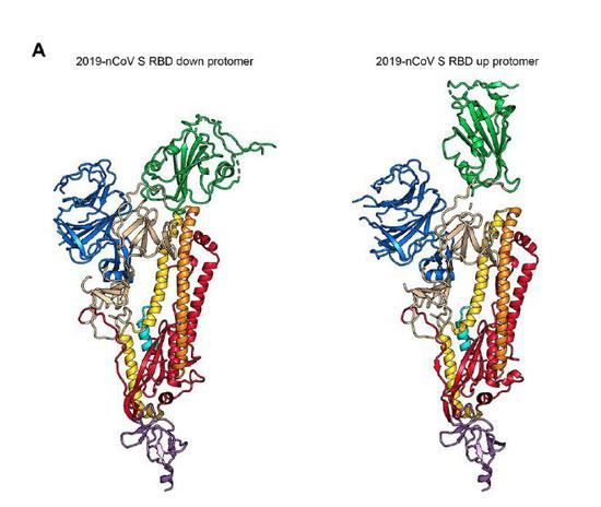 ▲受体结合域朝下(左)和朝上伸出(右)的结构(图片来源:参考资料[1])