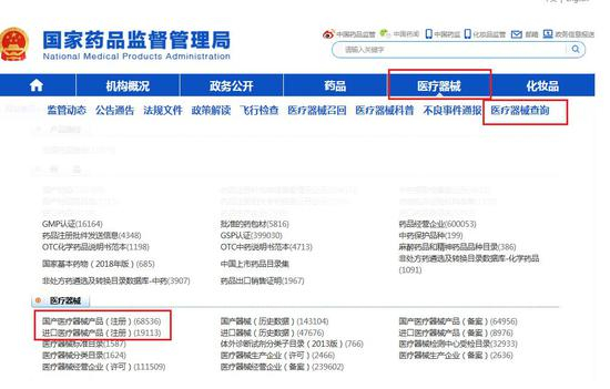 2、点击医疗器械查询,根据你买的产地,选择是国产器械还是进口器械。