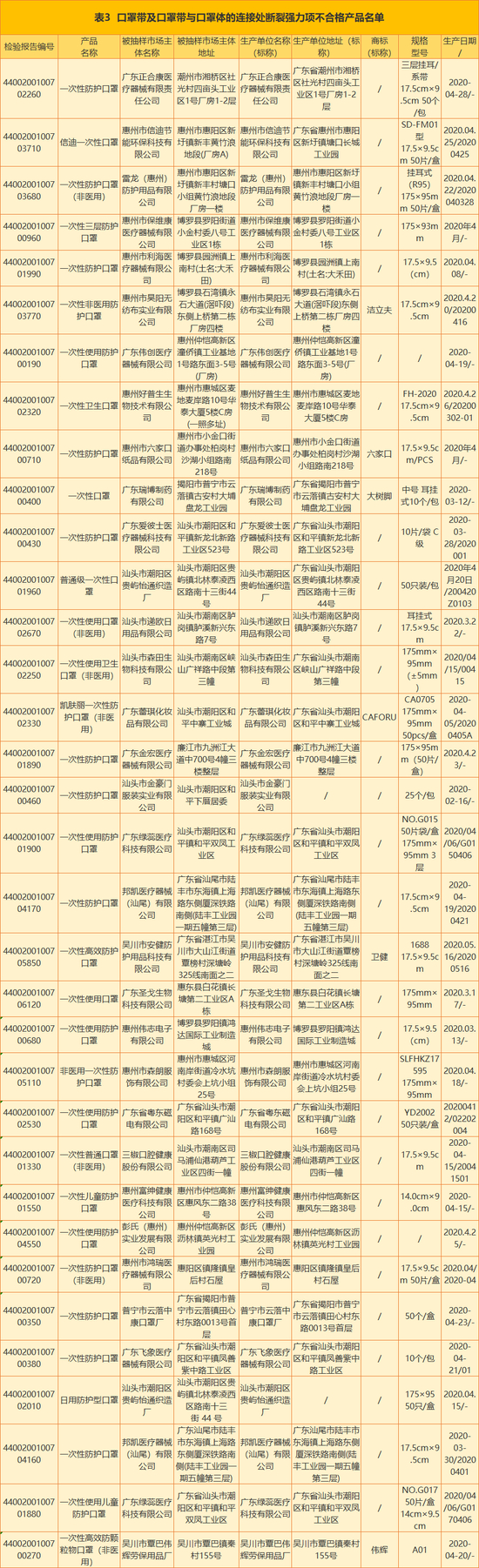 [口罩带及连接处断裂强力]35款产品不合格,容易脱落,影响正常使用