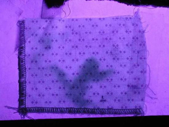 寻找现场的DNA,有时需要点特殊手段。比如黑光灯。