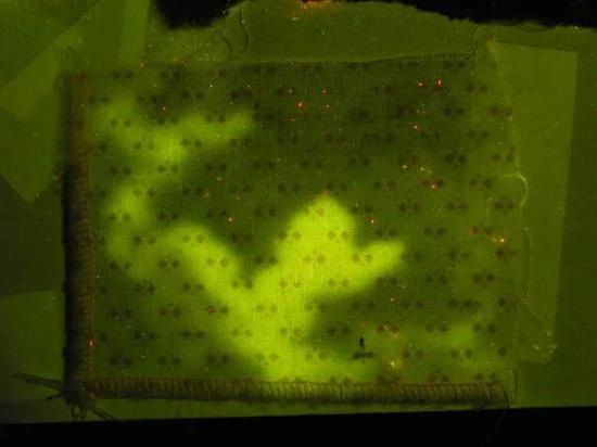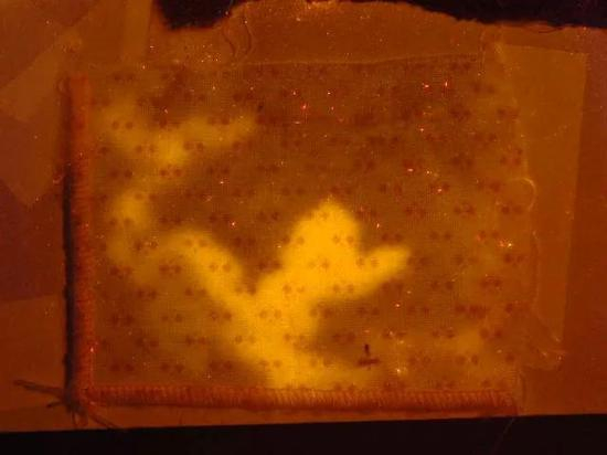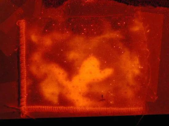 这是在自然光下沾有体液的一块布。看好了别眨眼。
