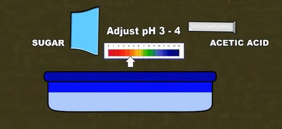 原材料准备好了,现在要个好培养基~先把椰子水过滤,再加入糖和醋酸,调节好 PH 值,经过加热后再冷却的操作,就配置出适合木质醋酸菌生存的环境了~(过程太生物化学了,我们就这么略过吧。)