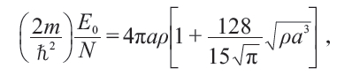 当时无法得到实验验证。50 年后,这个修正项随着冷原子物理学的发展而得到了实验证实。杨先生自己重新研究这个问题,用赝势方法将稀薄硬球玻色子多体系统从3 维分别推广到2 维、4 维和5维。