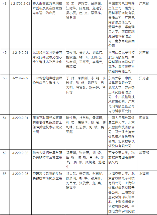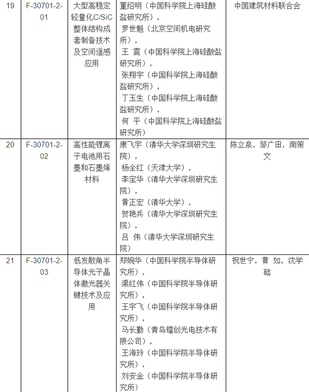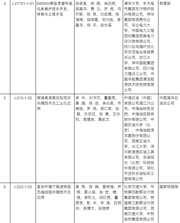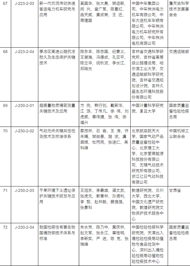2017年度国家科学技术进步奖获奖项目名单