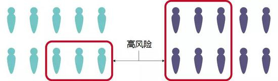 想象在刑事司法系统中使用的一套算法,根据再次被逮捕的风险,给两组对象(蓝色和紫色)生成得分。历史数据显示,紫色一组的逮捕率较高,所以算法模型会把更多紫色组的人归类为高风险(如图所示)。即使模型开发人员试图通过不直接告诉模型谁是蓝色组人,谁是紫色组人来避免偏见,但偏见还是可能发生。那是因为,用于训练中的其它数据可能暗示了某个人属于哪一组。