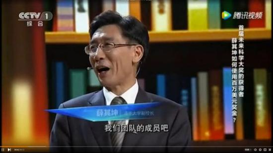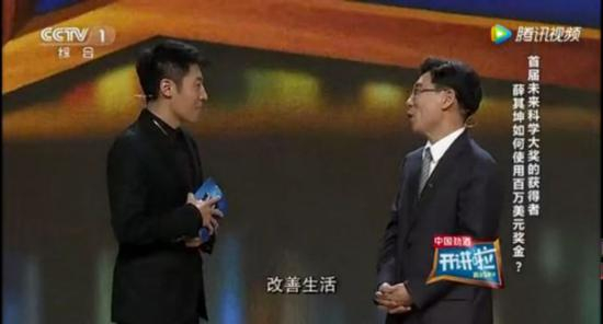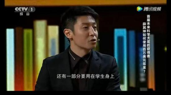 2017年5月6日,薛其坤应邀在央视‘开讲啦’栏目做演讲。薛其坤出场没多久,主持人撒贝宁向他抛出一个问题:如何使用“未来科学大奖”的一百万美元奖金?