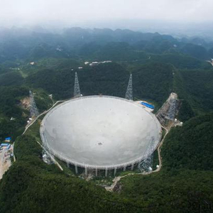 ▲位于贵州黔南州平塘县大窝凼的500米口径球面射电望远镜(FAST)。图片来自视觉中国。
