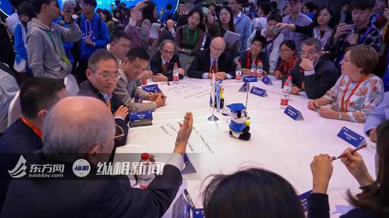 29日下午,世界顶尖科学家青年论坛在滴水湖畔举行,中国两院院士科学家、青年科学家、学者、青创科学家、中学生齐聚一堂,他们分散在15张方桌,探讨未来科学发展趋势。