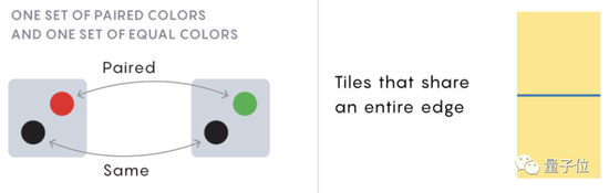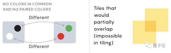 4、一对点颜色不同,另一对点颜色配对,表示两个正方形的边相互接触但不重合