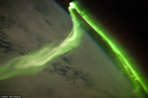 宇航员太空拍到如蛇般蜿蜒壮观南极光(图)