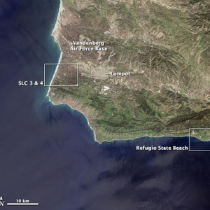 新浪科技讯 北京时间4月12日消息,美国国家航空航天局地球观测站(NASA's Earth Observatory)今日公布了一组卫星照片,展示了美国加州范登堡空军基地(Vandenberg Air Force Base)航天发射场的景象。