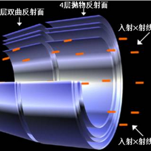 但如同石子在高速掠过水面时可以弹起一般,近乎平行于反射镜入射(即掠射)的X射线光子也能被全反射出去。只要选择X射线吸收率较低的材料来建造反射镜,并合理组合镜面形状,即可制成X射线聚焦望远镜。