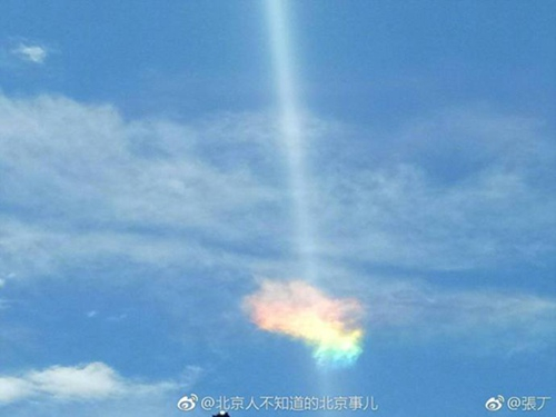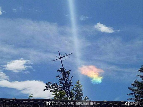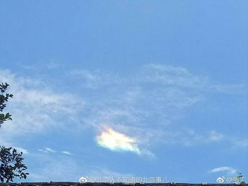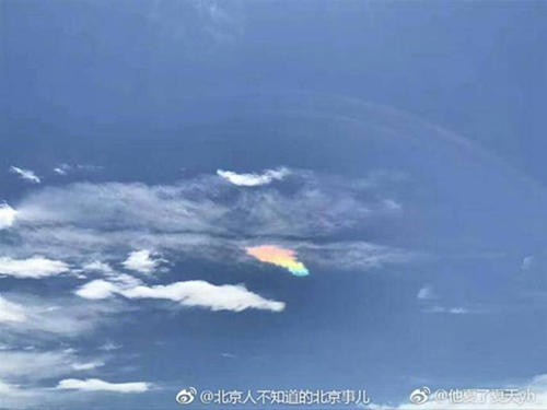 京城上空现七色祥云 专家:云中冰晶对阳光折射