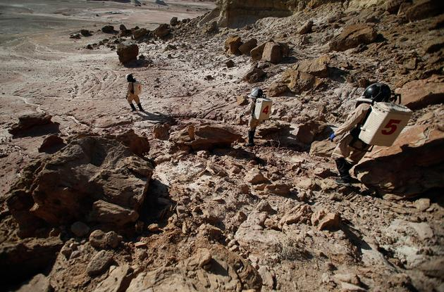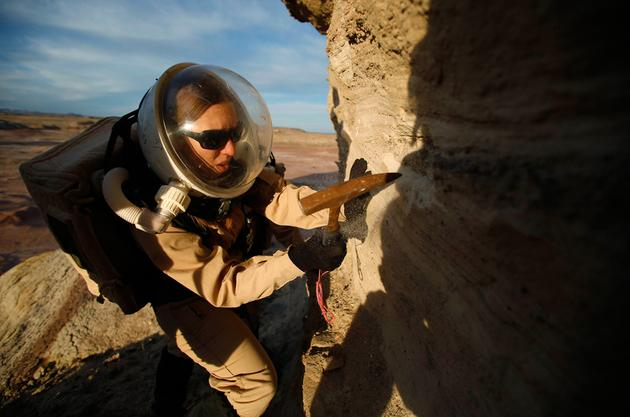 科学家在犹他州沙漠中找到了类似火星表面的模拟试验场,设立了火星沙漠观测站,让航天员在火星模拟场景中开展模拟生存、地质考察、植物栽培等(©Jim Urquhart/Reuters)