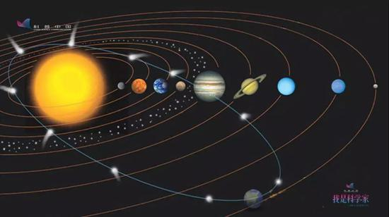 我今天演讲的题目是《今天宇宙空间里的天气怎么样》。首先想展示太阳系里面星体的基本示意图。