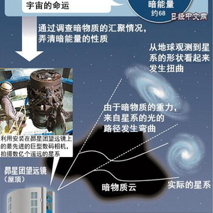 但到1998年,通过观测遥远的星系的星体爆炸,发现了出乎意料的结果。那就是宇宙的膨胀并未减速,反而正在加速。在宇宙中,相互排斥的斥力正在发挥作用,超过了暗物质的重力。这种斥力是由暗能量形成的。一般认为,暗能量的数量相当于普通物质的14倍,广泛而稀薄地充斥在整个宇宙空间。