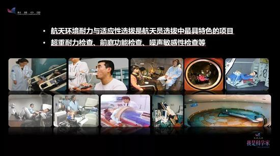“航天环境耐力和适应性”是航天员选拔中最具特色的一个项目,它包括超重耐力、前庭功能、噪声敏感性等等,一共有17项生理功能的检查,极具挑战性,所以,要当一名航天员是非常不容易的。