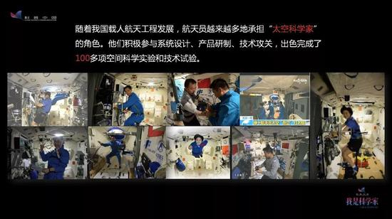 从“神五”到“神十一”,航天员越来越多地承担了“太空科学家”的角色。其中,做实验最主要是从“神六”开始,“神七”主要是出舱活动,“神九”、“神十”和“神十一”三次任务中,航天员完成的实验是特别多的,有100多项空间科学技术研究的实验,其中,在“神十一”33天飞行中,航天员承担了51项的科学试验和技术试验。除了这些,他们还做了一些公益的活动,这些重要活动与实验加起来一共是59项。可以说,他们既是工程师,也是科学家,既是生物学家,又是菜农,既是职业的航天员,也是载人航天的形象大使,在各种角色之间进行转换。
