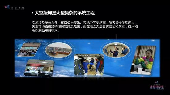 太空授课是一个大型复杂的巨系统工程,涉及的单位非常多,接口也极为复杂,另外,对天地协同要求非常高,航天员操作难度也很大。