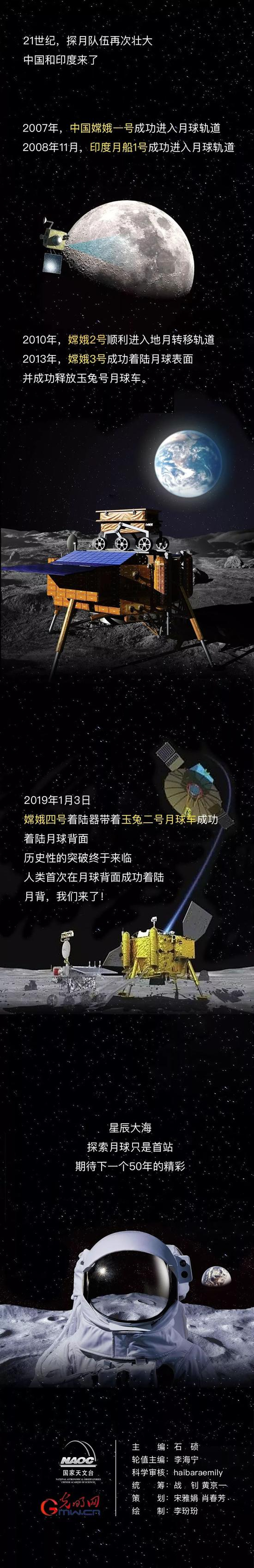 50年过去了,如今,中国的月球探测计划“嫦娥工程”也已经进入第16个年头。虽然中国的探月起步晚,但后劲足。经过嫦娥一号、二号、三号和四号任务的成功实施,中国在轨道设计、高精度测控、月面软着陆的就位探测和巡视探测等众多深空探测技术上,取得了长足的进步和发展;在月球科学研究领域取得了一系列基础性与创新性成果;培养了一支年轻的、科学技术素质与能力全面发展的人才队伍 。