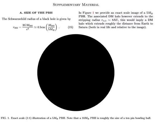 所以,目前观测到的P9的质量范围是合适的,它可以是原初黑洞。如果P9的质量是5倍地球质量,那么作为原初黑洞,它的半径大概是45毫米——差不多与一个网球一样大。