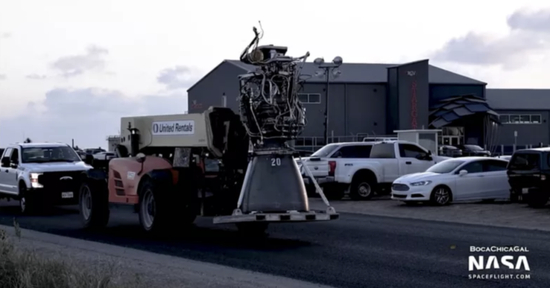 开放的空间让众多 SpaceX 爱好者有了一睹 Starship 真容的机会,甚至猛禽发动机——这个地球上性能最顶尖的液氧甲烷发动机——也能在路上悠闲地“逛街”。
