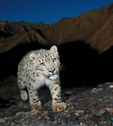 野生雪豹生活在雪线以上,是中亚高原特有的物种。在我国,属于一级保护动物,在国际IUCN保护等级中被列为“濒危”。由于生活在4000多米的雪线以上高海拔地区,行踪诡秘,被人们称为“雪峰隐士”。专家们只能粗略地根据大致的栖息地范围和每只雪豹的领地范围,推算出它们全世界的数量。据专家估算,目前全球野生雪豹大概仅有3500只~7000只。