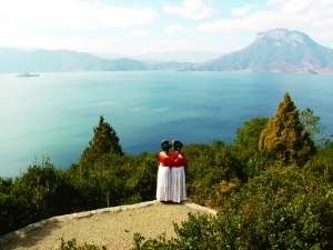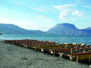 身临其境,水天一色,水平如境,缓缓滑行于碧波之上的猪槽船和徐徐漂浮于水天之间的摩梭民歌,使其更增添几分古朴,几分宁静。 每逢晴天,蓝天白云,倒映湖中,水天一色,景象奇丽。它犹如一块明珠镶嵌在群山怀抱之中,碧波荡漾,风光迷人,有“高原明珠”、“滇西北的一片净土”、“东方第一奇景”等美称。这里古朴的民风,秀丽的山光水色与浓郁的传奇风情,充满了神秘的色彩。