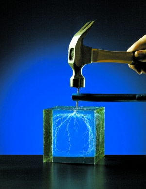至于其中的科学原理,海克曼解释说,“当粒子加速器将大量电子注入到有机玻璃板后,玻璃板内聚集了大量的电能(约100万到250万伏特)”。而在这之前,海克曼在有机玻璃板内雕刻一条很狭窄的路径,使大量电子突然间涌入“捷径”———和闪电释放电子的原理相同,只不过,这是一场在有机玻璃板内的“迷你闪电风暴”。闪电风暴带来的密集热量形成的形状永久性留在了玻璃板上。 (吴妮)