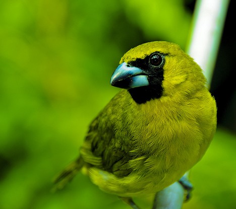 图片最上端的鸟是一只黄绿色的松雀,分布在巴拿马和南美洲北部地区。但是,如果你想找深绿色的鸟儿,鹦鹉家族就是一个很好的开始。从常见的相思鹦鹉到美艳惊人(而且极其聪明)的亚马逊鹦鹉,这些体型和声音均较大的鸟儿的深绿色羽毛中还夹杂着红色、黄色和蓝色。