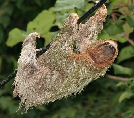 虽然从本质上绿色哺乳动物并不存在,但至少有一种哺乳动物身上披着一层绿色,它就是树懒。不管是两趾树懒还是三趾树懒,它们通常都懒洋洋慢腾腾,因此,在多雨的季节,青绿色的海藻会在它们的皮毛中和皮毛上生长。不过,这没什么坏处,因为这样树懒可躲避它的天敌大鹰。藏身树林中,而且行动非常非常缓慢,这让那些目光犀利的老鹰很难发现它们。