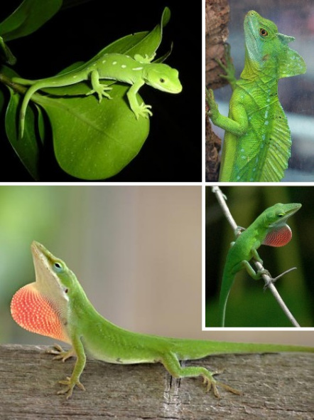 蜥蜴经常呈现鲜艳的绿色,这有助于它们与它们生活的周围环境保持和谐一致。很多宠物主人对绿色变色龙并不陌生,这种非常受欢迎的宠物原产于美国东南部。变色龙并不是变色蜥蜴,但是它们的肤色可以从亮绿色转变成暗棕色,以适应周围栖息地环境的变化。