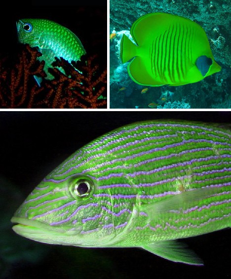 与那些生活在翠绿的植物丛间的昆虫喜欢绿色相比,那些生活在海洋、湖泊和江河里的动物,也钟情于绿色。上面这种绿色海洋生命之所以会呈现绿色,是因为在周围光照环境下,它们的胆汁颜色显现出来。不过有些绿色海洋动物是个例外,例如海蛞蝓Elysia Chlorotica。虽然它是一种无可争辩的动物,但这种其貌不扬的动物体内,拥有它吃到肚子里的藻类的绿色叶绿体细胞,这使它能像植物一样,通过阳光获取能量。