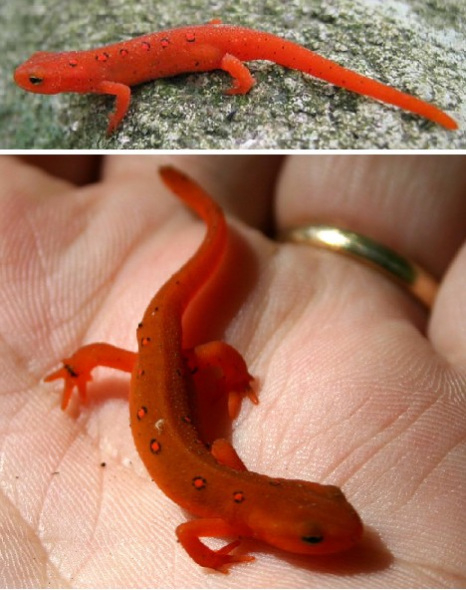 红斑蝾螈常见于北美洲南部潮湿的林区,这种两栖动物其实只有一个生命阶段体色呈红色。幼虫阶段和成年阶段主要是单调的褐绿色。红斑蝾螈体型较小,体长最多只有5英寸(约合12.7厘米),但寿命却长的惊人——15年。有关这种两栖动物的一个有趣事实是,一旦遭到攻击或因此受到威胁,它们的皮肤会分泌有毒物质。