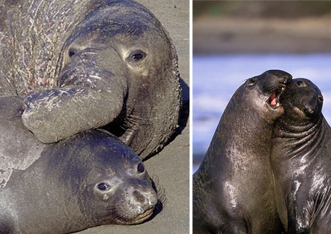 对体重一般是1700磅(771.11公斤)的雌海象来说,怀孕无疑是件非常辛苦的事情,它们要给体重比自己大4倍的雄性交配。在长达11个月的妊娠期,雌海象的体重会不断增加,然而生育后代后,它们的体重会迅速下降大约600磅(272.16公斤)。任何一位母亲都能证明这一点,这是所有母亲为抚养后代所做出的牺牲。