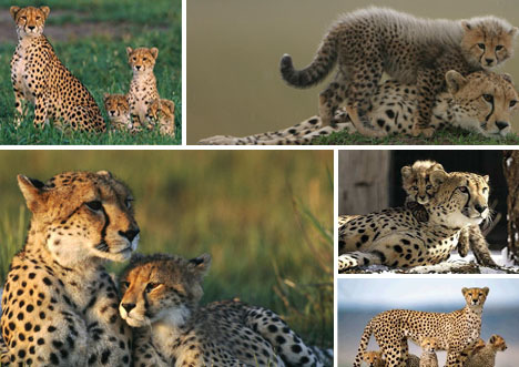 猎豹妈妈生下4到6只猎豹幼崽后,要用长达2年时间耐心教授它们如何躲避天敌和捕食猎物。一旦小猎豹学会了如何在这个充满危险的世界里生存下来的方法后,母猎豹将会再次重复上述过程:怀孕和抚养一群幼崽。