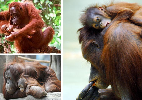 猎豹妈妈经过两年的悉心照料后,会把孩子从自己身边赶开,让它们开始独立生活。然而猩猩母亲并没那么幸运,它们需要用6到7年时间抚养后代。身为母亲的猩猩的主要工作包括,每晚为每个孩子在高高的树上搭建新巢。每只雌猩猩一生要为孩子们搭建3万多个巢。